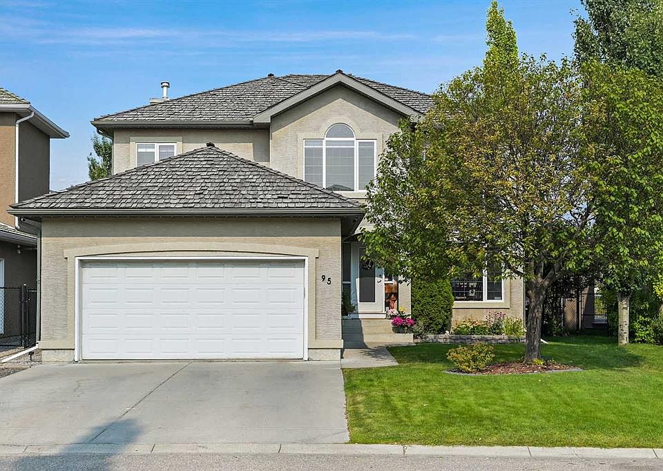 Welcome to 95 Panorama Hills View NW, an exquisite 2,412 sq. ft. custom-built two-story home with a professionally developed 1,073 sq. ft. basement, perfectly situated on a 40’ wide footprint and backing onto a park and tot lot. From the moment you step inside, you will be impressed by the grand curved staircase, soaring open-to-below design, and abundance of natural light flowing throughout the home. The main floor showcases two breathtaking 17’ ceilings over the formal dining room and living room, creating a sense of openness and elegance rarely found. The renovated kitchen is a true highlight, featuring crisp white cabinetry, a massive quartz island, stainless steel appliances, corner pantry, and seamless flow into the dining and living spaces. The formal dining room offers an ideal space for hosting guests, and the living room features a striking 17’ gas fireplace with a full-height cultured stone facade. A private main floor den with reeded glass sliding doors, hardwood & tile flooring, a renovated laundry room with built-in cabinetry and a tiled dog shower complete this level. Upstairs you’ll find three oversized bedrooms, including the luxurious primary suite with a spa-inspired 5-piece ensuite and walk-in closet. The professionally developed lower level expands the living space with a huge family and recreation room, two additional large bedrooms, a full 3-piece bathroom, and a generous utility/storage room — perfect for extended family living situations, or hosting guests. The rear yard, adjoining both a park and a children's tot lot, features a spacious patio, an extended privacy wall, professional landscaping, and a modern underground sprinkler system installed in 2021. The insulated double attached garage with built-in shelving provides functionality and convenience. This home has been meticulously maintained with thoughtful updates including A/C and new furnace (2018), gemstone lights (2021), soft water system (2021), washer & dryer (2022), updated in-floor heating (2024), tankless water heater (2024), new fridge (2024), cedar shake maintenance (2025-pending), and partial gutter/spout repairs (2025-pending). Additional features include custom blinds, newer toilets, home security hardware and more — ensuring comfort and peace of mind. Enjoy walking paths, parks, and both public and Catholic schools right within the community. Shopping, restaurants and quick access to main north/south and east/west traffic routes. A rare opportunity in sought-after Panorama Hills, this residence blends timeless craftsmanship with modern upgrades, offering both elegance and practicality for the discerning buyer.