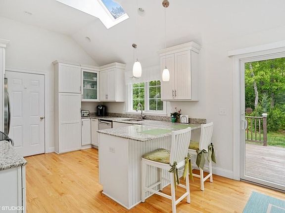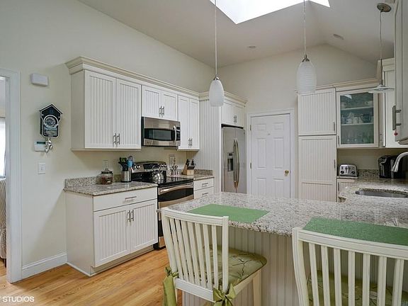Enjoy single floor living at its best! Enter the spacious, sun-filled living room with gas fireplace which flows into the open dining area and kitchen all with cathedral ceilings, skylights and gleaming hardwood floors throughout. The kitchen boasts granite counter tops and stainless appliances. Sliders lead to a large deck in your private backyard including privacy fencing on both sides. Master bedroom also features skylights, cathedral ceiling, en-suite bath and walk-in closet. Two additional bedrooms, another full bath, attached two car garage and full, unfinished basement with interior access complete this ranch. All information to be verified by buyer or buyers representation.