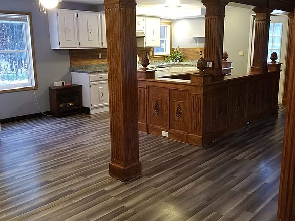 This home sits on a 2.3 acre parcel just outside of the village. You will have the luxury of peace and quite but the convenience of being a short drive to town. There is the option to turn this into a 3 bedroom home with the installation of two walls. Low maintenance! New roof and flooring throughout the house this year!!!! Must see for anyone in the market of buying a home!