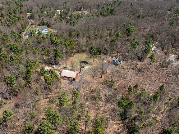 Truly a one of a kind property! Main home built in 2002 will welcome you with a cozy private front porch. Walking in the front door you will find an open concept dining room and kitchen and a large front to back living room. 1st floor 1/2 bath has washer and dryer plus there is an additional hookup in lower level.2nd floor features 3 bedrooms and full bathroom. Lower level has been finished with 3 extra rooms that could be used as family room, game room or guest room. So many possibilities! Lower level 3/4 bath has electric, plumbing and walk in shower, just waiting for your finishing touches. Large barn built in 1986 has parking for 4 cars and a large 1 bedroom apartment on 2nd floor. Perfect for in-laws, adult children or added income! New decking surrounds the heated gunite pool with jacuzzi tub which are only 4 years old. Summer fun is just around the corner! A lot of care and updates have gone into this home over the last several years to make it a true oasis. To top it all of you are surrounded by over 7 acres of land. Do not miss this rare opportunity, schedule your private showing today!
