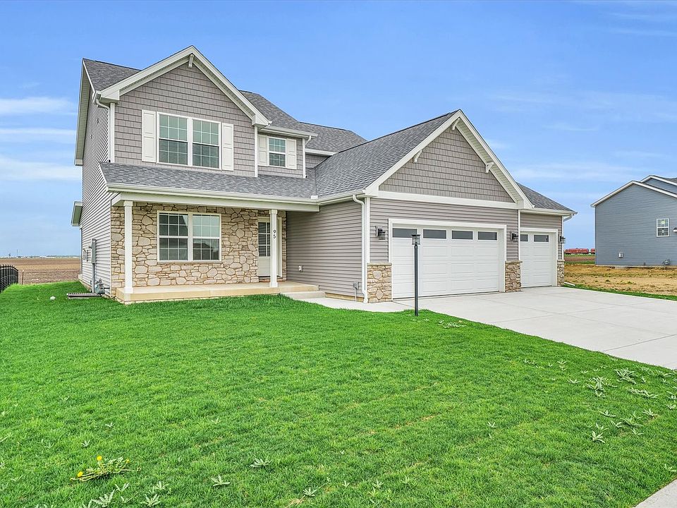 Stunning custom build gives you the perfect home to start out 2024 in!! Tastefully designed with a neutral palette inside and out. A gorgeous stone front welcomes you with cedar shake accents. Enjoy endless country views off the back screened-in porch with the fields just behind you. Beautiful 7 1/2" planked wire-brushed light oak flooring welcomes you throughout the main floor and continues up the stairs and landing. Gas fireplace is pulled in, giving you the option to add bookcases. This versatile floor plan, with an added 2 feet to expand the living room and primary, gives this home a more open feel. The kitchen is gorgeous with Amish-made, custom built, all white cabinetry accented with brass hardware. The island is oversized with stainless steel sink, additional cabnitry and dishwasher. All kitchen countertops are the timeless carrera-style quartz. Off the 3 car garage you enter the mudroom that features built-in lockers and tiled floor with herringbone pattern that leads into the office. On the second floor you will find the 3 bedrooms, laudry and full hall bath. The master bedroom is to die for! It features the master bath with dual vanities, water closet, 6 foot tiled shower, freestanding soaking tub and finishes with a huge 10 x 12 walk-in closet. The full basement is partially finished with a great room (plumbing roughed-in for a future kitchen), bedroom with a walk-in closet, full bath and additional space for storage. Full list of upgrades and details available upon request / owner is lisenced Realtor.