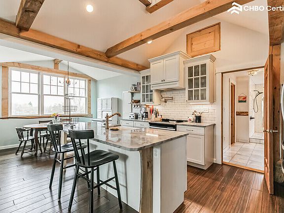 Stepping into the home, you'll see you have a spacious area to make your own. It spans 2,000 square feet and comes with three bedrooms and two bathrooms. Each of the bedrooms has a rustic charm and large windows so you can enjoy the view anytime you desire. The beds are comfortable and the bathrooms come with everything you need. Enjoy a large walk-in shower, freestanding soaking tub, double vanity, and radiant heat in the master.