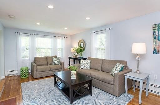 Live in this picture-perfect, fully updated, sun-filled Cape conveniently located within walking distance to Medfield's town center. This home features: hardwood floors throughout, three full and fully updated baths, four bedrooms and a large, bright, updated kitchen with granite counters and stainless appliances, and the charming living room features a wall of windows, a fireplace, and gleaming hardwood as well. There is a master bedroom on the first floor with on suite master bathroom , which makes it desirable for all buyers. The finished lower level room is a perfect updated family room, office or exercise room. The yard is spacious, private and level with a patio and shed. Recent updates to the home include, new: remodeled fireplace, paint in all rooms, master bedroom w/walk-in closet and brand new master bathroom and more! This fantastic, must see home is a short trip to: great restaurants, a grocery store, Starbucks, and other cute shops.