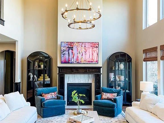 The interior features designer lighting and upgraded Emtek hardware throughout. At the heart of the home, the fully remodeled kitchen dazzles with top-of-the-line appliances, including an oversized fridge/freezer, Lofra 8-burner gas range, nugget ice maker, beverage refrigerator, and a hidden walk-in pantry. A water softener and instant hot water system add to the home’s convenience and efficiency.
