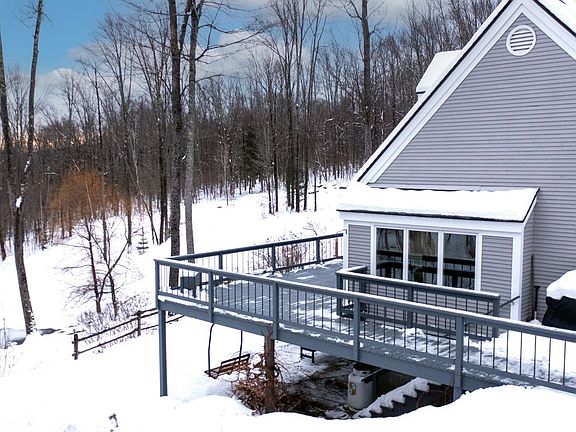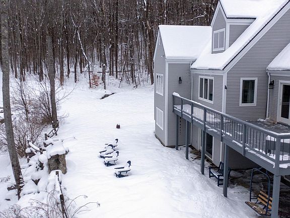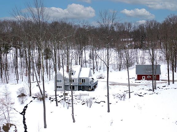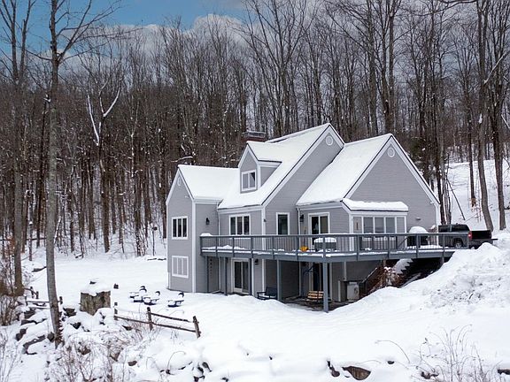Escape to the picturesque countryside of Vermont with a renovated mountain home that seamlessly blends indoor and outdoor living. Soak in the breathtaking views of cascading ponds from the spacious walkout deck, ideal for entertaining guests. The home features updated kitchens and bathrooms, including a main-level master suite with a walk-in closet. The open-concept living room boasts vaulted ceilings, a fireplace, and hardwood floors. The lower walkout level offers a versatile space with a recreation room, office, and guest bedroom. Embrace the tranquility of the property's 6.65 acres, with outdoor amenities such as a wraparound deck, stone BBQ, and stone patios surrounded by lush perennial gardens. A charming barn provides ample storage space or a perfect space for hobbies. With skiing just a stone’s throw away, enjoy endless opportunities for winter and summer activities. This private retreat offers the ultimate combination of natural beauty and contemporary comfort.