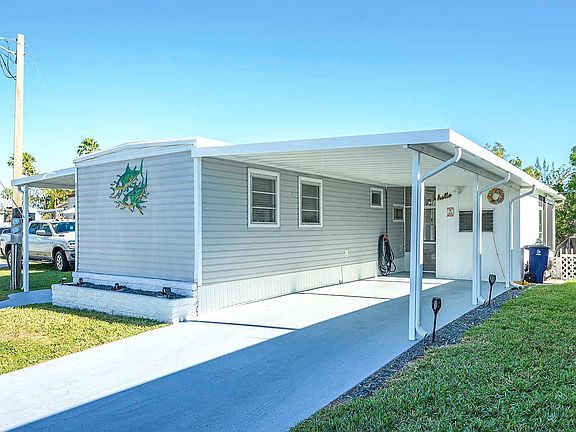 Located in Orange Harbor, a 55+ Community, this Breathtaking Waterfront Home will knock you off your feet! These 2 Bed/ 1 Bath home features multiple renovations including NEW waterproof Plank laminate flooring, tile throughout and NEWER Kitchen Appliances. The open Kitchen features lots of great space and offers plenty of ceiling lighting in every room. The spacious open floorplan features NEW central A/C as well as working smoke alarms, ceiling fans, and built- in cabinets. The upgrades do not stop there! NEWER plumbing, NEW 2022 Roof and NEWER water heater are also some current renovations. Other appliances included are washer and dryer set. With multiple outdoor amenities including multiple outdoor seating areas, perfect for entertaining your out-of-town guests with your own personal screened in porch that overlooks a gorgeous waterfront view, the perfect spot for morning coffee and sunsets. With its own personal dock for fishing or simply to enjoy the weather and outdoor scenery, a storage shed, own personal sprinkler system & spacious driveway, enough space for 2 vehicles, this home has all the bells and whistles! DIRECT GULF ACESS!!! Community has many amenities including, 2 Boat Ramps, Boat/RV/Trailer Storage, Heated Swimming Pool, Clubhouse with Commercial Kitchen, Library, Laundromat, 9 Shuffleboard Courts, 4 Horseshoe Courts, 2 Tiki Huts, 2 Bocce Ball Courts, Billiard Room/Card Area, Lighted Streets, Separate RV Resort, On-site Management/Home Sales Offices, Pet Park and more! Do not miss out on this amazing opportunity and come see this home for yourself!