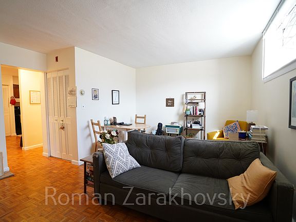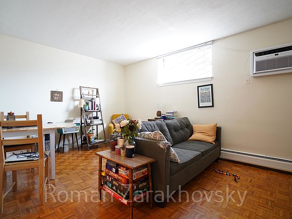 This apartment features 647 square feet of living space, hardwood flooring throughout, thermostat-controlled heating, a good sized kitchen with dishwasher, a spacious living room with space for a small dining room table as well, built-in AC, an updated and fully tiled bathroom, and there is a large bedroom with great closet space. The rent includes heat and hot/cold water, and there are laundry facilities in the building.