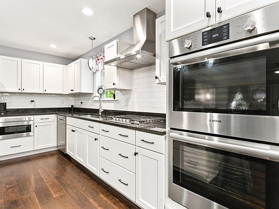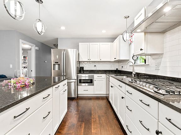 This beautifully maintained ranch offers a spacious and thoughtfully designed layout with 4 bedrooms, 3 full bathrooms, and high-end finishes throughout. The open-concept main level features gleaming hardwood floors, fresh paint, radiant floor heating, and a cozy gas fireplace—ensuring year-round comfort. An energy-efficient system, including heat pumps and an on-demand boiler, provides reliable climate control with cost-saving efficiency.
