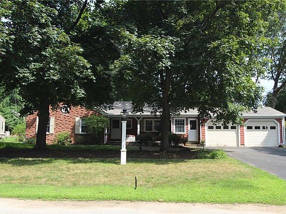 LOCATION! LOCATION! LOCATION! Private half acre with stone wall, flower gardens, blueberry bushes, grape arbor, flagstone walk, Farmer's porch, 8X14 Breezeway and 2 car garage. Kit with Cherry cabinets, undercounter lighting, CT fl, cable HU for TV, deep sink, tile backsplash, Lg Pantry, breakfast area, Range, Microwave, Refrigerator & Dishwasher. Din Rm, two built in China Cabinets flank double mullion window. Lg picture wndw in LR brings in the beauty of the outside. Watch the birds feed & your garden grow. A raised hearth, masonry FP plus a copper lined planter complete this lovely setting. Hardwood floors throughout, Ceramic Tile in baths floor, tub & shower, vanity with Corian sink plus linen closet with light. Overhead light in bedrooms, one with paddle fan. Finished lower level with fireplace, Rec Rm, Office, Laundry and plenty of storage. Recent updates: windows, roof, six panel doors, new bulkhead, gar doors & openers & 2 Zone FHW/oil boiler. Sump in basement. Seller to install a new septic system.