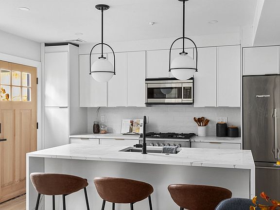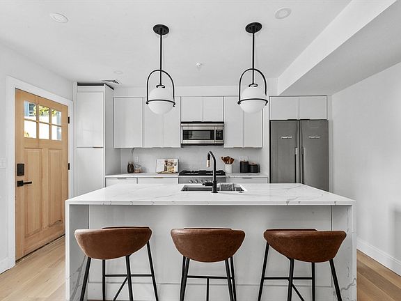 Stunning New construction 3 bed 2.5 bath with 2 decks & private patio space! Located on one of East Cambridge's most charming blocks, lined with historic homes creating a truly a picturebook setting. No Expense was spare on this ultra modern luxury construction with cutting edge high end finishes throughout. The dining room is open to the beautiful kitchen featuring Breakfast Bar, stainless steel appliances, beautiful custom cabinetry with soft touch feature. Off of the spacious living room, step out on your deck to enjoy some fresh air. Large office off of living room. Both guest bedrooms & the guest bath are well sized. The massive primary bedroom encompasses the entire top floor, w walk in closet, & luxurious bathroom w glass walk in shower. white oak floors, central air, nest, marvin window, trex decking. Perfectly located, steps to countless shops, restaurants MIT & all that Kendall & E Cambridge have to offer 97 WALK & BIKE SCORE! Offers to be reviewed Monday July 29 6 PM