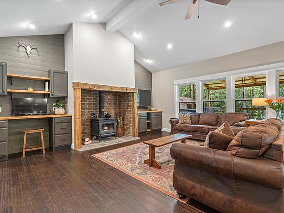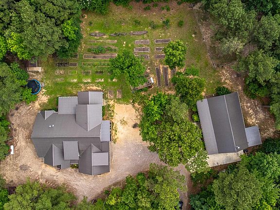 Welcome to 95 Thunder Mountain—a stunning luxury homestead tucked into 7.9 acres of peaceful Caddo Gap wilderness. This custom-built estate includes a beautifully crafted main home and a high-end 2-bedroom guest house, both topped with 50-year metal roofs and designed for energy efficiency. Inside the main home, bamboo floors, vaulted ceilings, and a wood-burning stove set the tone for warmth and charm. Floor-to-ceiling windows bring the outdoors in, flooding the open-concept living, dining, and modern farmhouse kitchen with light. The main level features a spacious primary suite with a clawfoot tub, vintage-style vanity, and walk-in closet, plus a second bedroom for kids or guests. Upstairs offers three more bedrooms, a full bathroom, and a bonus space perfect for a playroom, media room, craft room, or office. It's perfect for large families! The guest house is equally impressive—open, airy, and ideal for multigenerational living or short-term rental income. All of this is just minutes from the Caddo River, Ouachita National Forest, and crystal mines; this is Arkansas luxury homesteading at its finest.