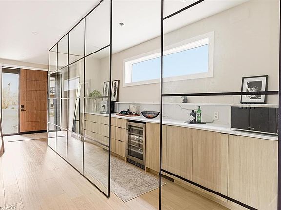 Welcome to 95 Williams Street, Waterloo! Built in 2022, this modern and spacious home offers over 4,500 sq. ft. of thoughtfully designed living space with 5 bedrooms and 5 bathrooms. Perfectly situated in the vibrant heart of Uptown Waterloo, you’ll enjoy easy access to top-rated schools, parks, trails, restaurants, shops, and public transit. Step inside to an inviting open-concept main floor with 9’ ceilings, pot lights, and large windows that fill the space with natural light. The chef-inspired kitchen features quartz countertops, modern cabinetry, stainless steel appliances, and a generous island—perfect for cooking and entertaining. The bright living room with a gas fireplace flows seamlessly into the dining area, which opens onto a deck ideal for outdoor gatherings or quiet relaxation. The second floor offers three spacious bedrooms, including two connected by a stylish Jack-and-Jill bathroom. This level also features a bright home office with balcony access, a convenient 2-piece powder room, and a dedicated laundry room. The third floor offers a private primary retreat complete with a large walk-in closet, a stunning 5-piece ensuite with double sinks, marble flooring, glass-enclosed shower, and a soaker tub—plus an additional great room for lounging or work-from-home flexibility. The finished basement adds versatility with a fifth bedroom, a 4-piece bathroom, and a generous rec room, perfect for guests, in-laws, or a home gym. Outside, enjoy a fully fenced backyard with open green space and a spacious deck for family barbecues or evenings under the stars. Built with quality and attention to detail, this home includes 16” engineered floor joists, 6” European white oak hardwood flooring, two-zone heating and cooling, a durable steel roof, and an extra-high garage ready for a car lift. Experience the best of modern design, everyday comfort, and Uptown living at 95 Williams Street.
