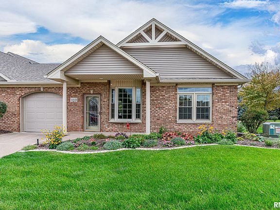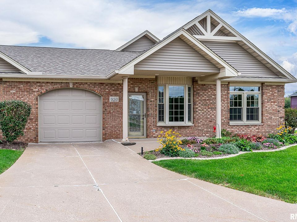 Welcome to this move in ready beautifully maintained 2 bedroom 2 bath home in desirable Arbor Village 55+. This zero entry end unit offers easy living in a convenient Moline location, within walking distant to grocery stores, hospital, shopping and restaurants. Both bedrooms have walk in closets with built in shelving and cubbies making things easy to store. Step inside to a bright cheery kitchen with newer appliances and a skylight that opens seamlessly into a spacious dining area with vaulted ceilings and wall of windows facing the beautifully landscaped yard and patio. The living room boasts large windows and arched doorway adding charm and character. The home has a heated garage and energy efficient geo thermal furnace. Enjoy the comfort, convenience, and community of this hard to find Arbor Village end unit. Perfect for those 55 + looking for quality and ease of living in a prime Moline location.