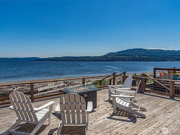Live the ultimate waterfront lifestyle in this beautifully updated no-bank beachfront home! Wake to stunning sunrises, unwind on the spacious deck just steps from the shore, and soak in endless water views. This 2BD/1.75BA retreat offers a modern kitchen with quartz counters and new appliances, cozy living with a propane Jotul stove, & new windows framing the ever changing seascape. Luxury vinyl flooring. Sizable main level bedroom features spa-like bath with jetted tub and radiant floors. Upstairs: a spacious bedroom, laundry & loft for work/flex space for relaxation. Enjoy crabbing, kayaking & a private boat launch in a welcoming coastal community on Discovery Bay, just 10 miles to town & the many trail systems. Detached 2 car garage.