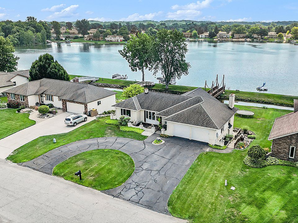 Discover your perfect waterfront retreat on the All Sport Rushmore Lake! The waterfront location provides stunning water views and direct access to recreational activities right from your backyard. Inside, you'll find thoughtful design elements that set this home apart. The unique feature of two kitchens makes entertaining effortless. The primary suite wing boasts a walk in closet and attached bathroom. Outside you'll find multiple decks, patio, and a 3 seasons room that face the beauty of the lake. The convenience continues with two laundry areas, eliminating the hassle of coordinating washing schedules. The finished basement adds valuable living space with a lower level garage to store your lake toys. This property combines waterfront living with practical amenities in a location that balances tranquility with accessibility. The features of this home combined with the desirable waterfront setting and finished walkout basement space, create an opportunity that rarely comes to market.