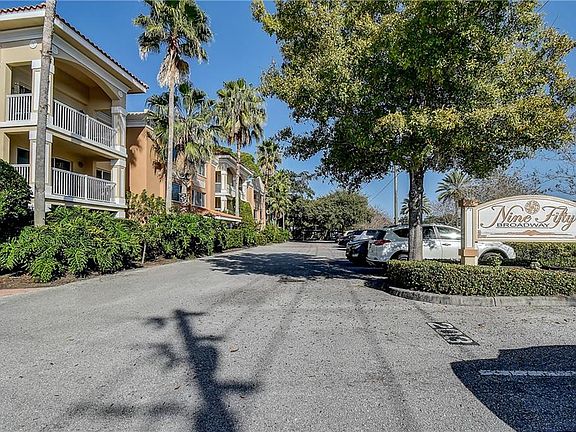 2BR/2BA in the heart of downtown Dunedin! Nine Fifty Broadway is an upscale trendy complex sitting one block off Magnificent Main Street. Controlled access building with elevator! Pristine condition unit! Renovated Kitchen and Bathrooms boast granite countertops and upgraded wood cabinetry! New stainless steel appliances! New paint, lighting, plus crown molding throughout! Spacious master suite with remodeled bathroom, new carpet and walk in closet! In unit laundry! Extra locked storage closet at end of hall! Enjoy breakfast or cocktails on the private balcony! Relax & unwind in the sparkling resort-like pool with pavers, private tropical gardens, spacious deck, grilling area, shady gazebo, cabana, bathrooms and covered bike racks! Building has plenty of guest parking. Invite guests over and walk to all your favorite venues! All within a several blocks stroll, absorb the ambiance of Dunedin's fine and funky restaurants, eclectic nightlife, craft breweries, galleries and boutiques, craft shows, jazz and blues festivals, cultural events, and the Dunedin International Film Festival! Walk to Pinellas Trail! Walk one block to historic Victoria Drive and Dunedin Marina and enjoy waterfront park, fish on the pier or catch a ferry to world famous beaches of Caladesi Island! Quick drive to Clearwater Beach and Honeymoon Island! Inside the Golden Circle of legal short term (30 day) rentals in Dunedin, one of the only condos in Dunedin that allow for Airbnb! Pet friendly, small dog (under 25lb) or two cats welcome!