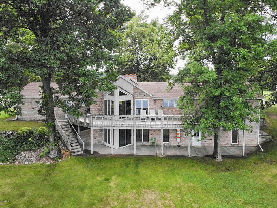 Lee Lake - 160 feet of WONDERFUL! Over 3400 finished sq ft, this home is turnkey. Living room and dining area have vaulted ceiling, fresh paint and brick gas log fireplace. Enormous kitchen offers center island with snack bar and copious amounts of cabinet and counter space. Dining area has an attractive view of the lake and access to the deck. Master suite offers access to the deck, a walk-in closet and en suite bath. Second bedroom and full bath are also located on the main floor. Main floor laundry doubles as mud room. Walkout basement has wood burning fireplace. Basement full kitchen has appliances and pantry. Two additional bedrooms offer seclusion from the main living area. Full bath has Jack and Jill doors and easily accessible when coming in from the lake. Smaller room is perfect for a den/study and has a built in safe. Bonus amenities: security system, generator, sprinkler system, all appliances, new roof in 2019, great fishing. Superb sunsets on this all sports lake!