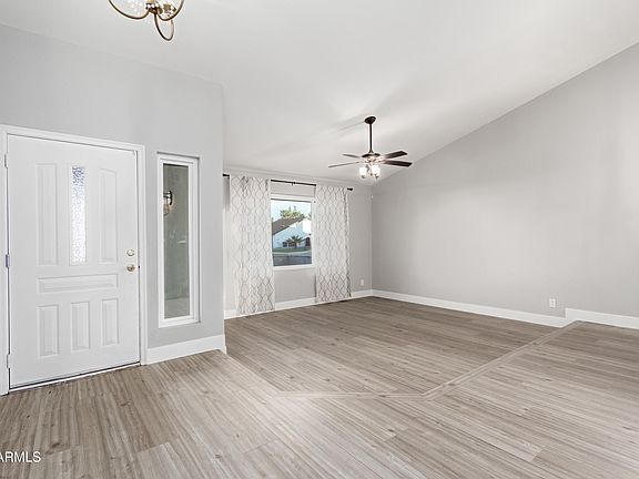 12/2024 installed vinyl plank flooring, plush upgraded carpet and accented with 5 inch baseboard. Most days on market were before floor and trim updates. Beautiful 4-bedroom 2 bath home which offers vaulted ceilings, dual-paned vinyl windows (2021), new interior paint (2023). The open kitchen features abundant counterspace, granite countertops and upgraded stainless steel appliances. The pristine backyard has a fenced, sparkling diving pool surrounded by stone decking with a large covered stone patio. The stunning, deep-green synthetic grass area brings it all together!