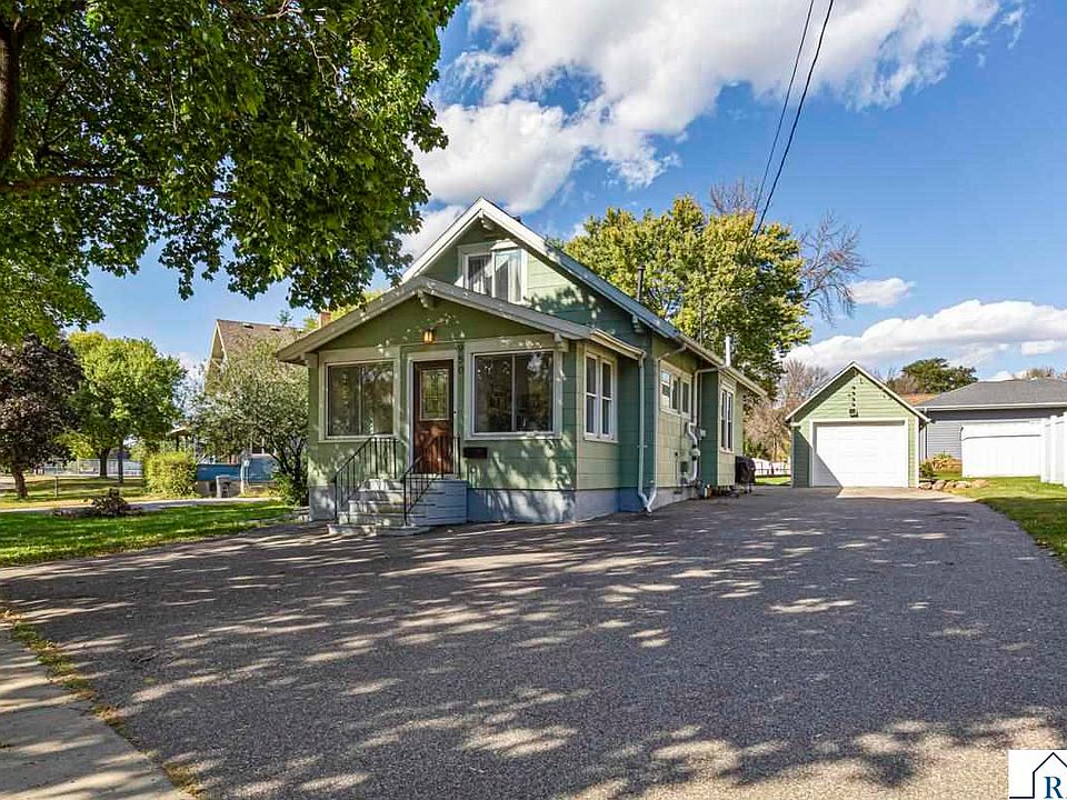 Renovated bungalow ideally located just off Glenwood and Main Street in Hilltop Mankato—within blocks of Bethany Lutheran College, the Mayo Campus, and Alexandria Park. Filled with natural light through updated windows, the main level offers an open floor plan connecting the four-season porch, living room, and kitchen. The kitchen features a movable beadboard-sided island with a granite countertop, providing both flexibility and additional storage. A built-in bench seat within the bay window creates a cozy and practical dining nook. Two bedrooms and a full bathroom complete the main level. Upstairs, you’ll find an inviting third bedroom enhanced by skylights, a charming wrought-iron banister, enclosed storage areas, and an additional closet. The lower level includes an extended three-quarter bathroom with laundry area—complete with a high-efficiency GE washer and dryer (2024)—plus a fourth bedroom with luxury vinyl tile flooring and an egress window. A spacious utility room offers excellent storage potential. Additional highlights include plenty of off-street parking, and a concrete patio off the back entrance completing this thoughtfully updated home.