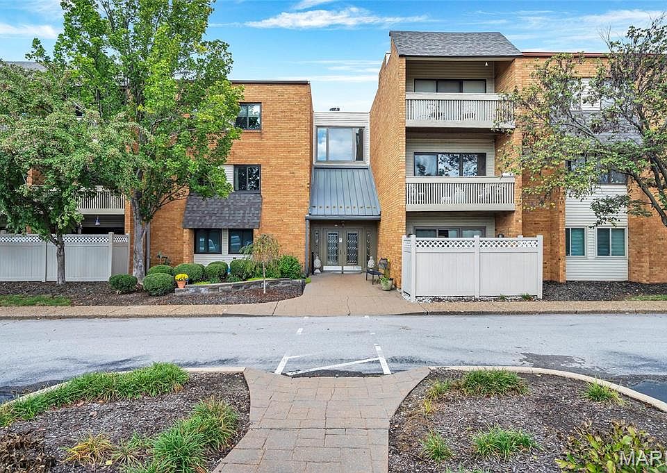 Discover this beautifully maintained 2-bedroom, 2-bath condo in Courtland Hall! This unique unit features a private, gated entrance and a modern kitchen with stainless steel appliances and granite countertops. The cozy living room boasts a luxury vinyl plank flooring, and a fireplace, perfect for relaxation. You'll enjoy two fenced-in patios, ideal for outdoor condo living. Residents also benefit from shared amenities including a card room, a tranquil indoor atrium, and a community pool. Courtland Hall is perfectly positioned off of Olive Blvd, offering convenience with many Fortune 500 Companies, Dining, Restaurants and Entertainment all within a short drive (or walk!). This condo is also located in the highly sought-after Parkway North School District. Location: Corner Location, End Unit, Ground Level, Lower Level, Suburban