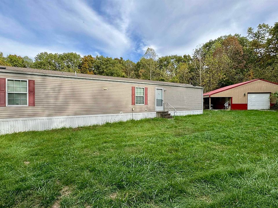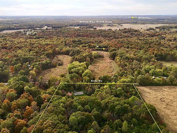 Located at 950 Earl Road, just east of Mitchell and less than 4 miles from the main entrance of Spring Mill State Park, this 14.35± acre tract provides a quiet country setting with privacy and established improvements. Set in a peaceful rural neighborhood, the property offers both convenience and seclusion, ideal for those seeking a manageable homestead or recreational retreat in southern Indiana. With approximately 530 feet of paved county road frontage, the property features a gated entrance and an established drive leading back to a one-acre clearing. This area hosts a well-maintained 3-bedroom, 2-bath single-wide mobile home along with a 24’x32’ pole barn built in 2017. The barn includes a concrete floor, 8-foot lean-to, overhead door and electrical service, making it useful for storage, equipment or hobby projects. Utilities are already in place and include electric service from Orange REMC, high-speed fiber internet from Orange Fiber, rural water from East Lawrence Water and a private septic system installed in 2017. Beyond the improvements, the land transitions into approximately seven acres of mature hardwood timber and about three acres of open field that has naturally developed into a cedar thicket. The combination of timber, cover, and edge habitat provides excellent conditions for wildlife. The property and surrounding landscape - characterized by large wooded tracts extending toward Spring Mill State Park - support healthy populations of deer, turkey and small game. This property has primarily served as a weekend getaway and hunting retreat, but its infrastructure and accessibility also lend themselves to full-time living. Located just 3 miles east of Mitchell, 13 miles south of Bedford and approximately 35 miles from Bloomington, the property offers a balance of rural privacy with access to nearby amenities. Whether you’re looking for a small homestead, a ready-to-use hunting property or a quiet base near one of Indiana’s most scenic state parks, this 14.35± acre tract provides a versatile opportunity to enjoy southern Indiana’s natural beauty.