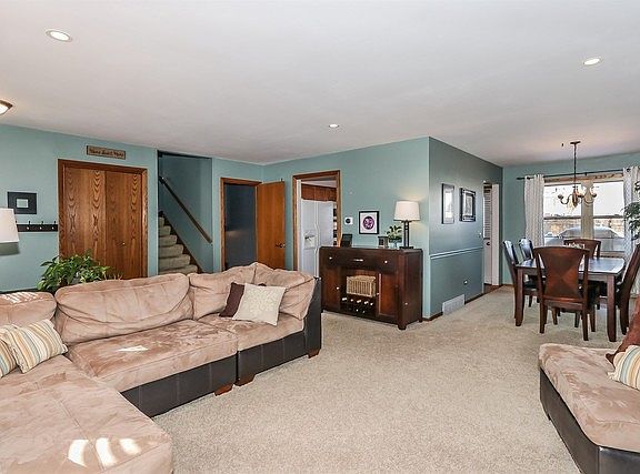 Beautiful 3 bedroom, 2 bath split-level. Bright and neutral throughout! Updated eat-in kitchen with oak cabinets, all appliances, counters, wood laminate floors, wood blinds and trim. Hardwood in entry and 2 fully updated bathrooms. - New furnace installed in 2013. - New roof, siding and gutters installed in 2015 - Upstairs bathroom updated in 2015 - Downstairs bathroom updated in 2017 - New fence installed in 2016 Family room bay window, washer and dryer, maintenance-free composite deck, landscaped.