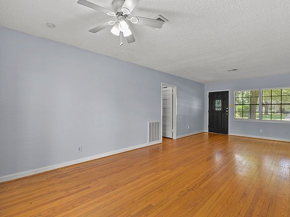 Step inside to find natural light pouring through every room, highlighting the no-carpet flooring and fresh, airy feel. Each bedroom is equipped with ceiling fans for year-round comfort. The spacious kitchen features stunning sky-blue cabinetry that adds a pop of personality, with large windows that fill the space with sunshine.