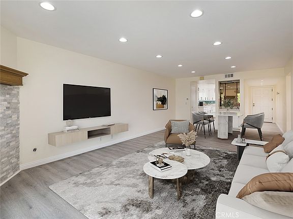 Completely remodeled bright and open west facing 2 bedroom 2 bath unit. New paint and flooring throughout, recessed lighting. The living room is accented with a contemporary fireplace and large slider door out to the spacious balcony. The primary bedroom features ensuite bathroom and one walk-in closet and one standard. Side by side parking spaces in gated subterranean garage. The HOA amenities include pool, spa, and paid water and trash.