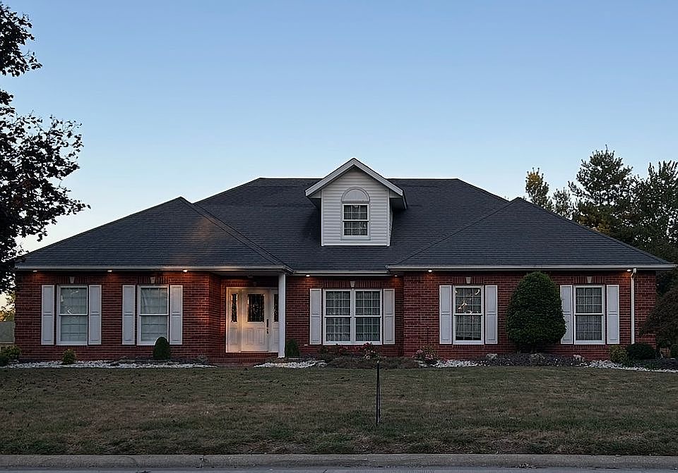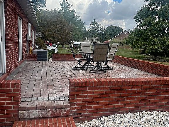 Brick homeAttached bathroomPaver sidewalksTable seating areaDining room off kitchenOpen layoutMultiple storage rooms
