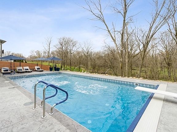 Walkout ranch with 20x40 saltwater heated pool, sits on exec lot, tucked away on a cul-de-sac with private, tree-lined backyard. Huge front porch, double glass entry doors, & beautiful wainscoting entryway. Main level offers 2 bedrooms plus pocket office with custom built-ins. Primary suite has incredible views & oversized closet connected to the laundry room. Vaulted living room features a gas FP, leading into the kitchen with quartz counters, gas stove, and large island. Screened-in porch with a stone fireplace and the separate deck make this home perfect for entertaining. Lower level is an entertainer's dream with 10' ceilings, spacious family room, a full bar with a pass-thru window to pool, & plenty of storage. Two more bedrooms and a full bath complete the space. Too many extras: an outdoor fire pit with Adirondack chairs, custom outdoor Christmas lights included, husky garage storage stays, and landscape lighting on a timer. Smart home with apps for pool, heated floors, etc.