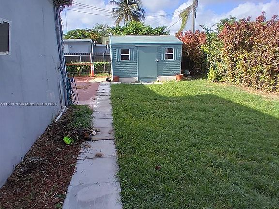 Biscayne Gardens, Miami, Fla. 5 Bedrooms 3 and half bath. Large corner property with plenty of parking, circle driveway, fenced yard, two large sheds, basket ball area and tiki hut great for enjoying evenigs, parties, family or friends .