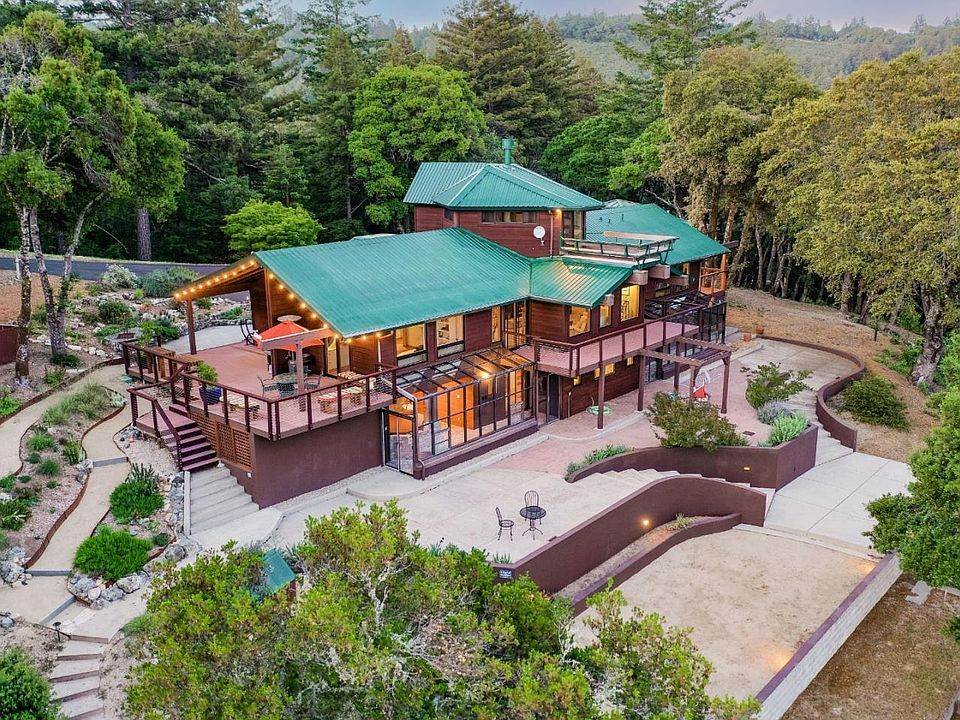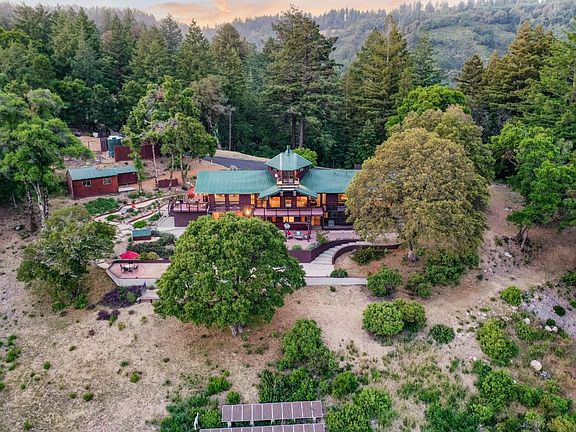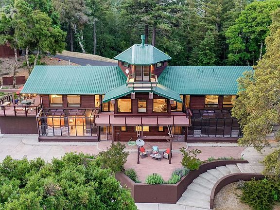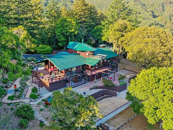 Just off of Skyline Boulevard! Enjoy your own privacy or engage with the fun Oak Ridge community neighbors! Modern, smart-enabled kitchen, updated bathrooms. Spectacular views, picturesque living. Gated entry opens to the perfect home for peaceful solitude or entertaining crowds. 3083sf main hm and guest hm of 498sf upon 21.6ac, ample space includes private hiking or biking trails and plenty of privacy. Inside the home enjoy more views and a welcoming warmth and elegance. Lovely indoor/outdoor open floor plan and a wall of windows flows across the living room, dining area, and kitchen showcasing the views beyond. High ceilings and lots of natural light. Remodeled gourmet kitchen features 2 beverage fridges, high-end appliances, smart-enabled lights, radiant-heat floor. Bedrooms with walk-in closets, plush carpet. Newer wshr/dryr. Solarium with jacuzzi, sauna! Outdoors enjoy a fenced-in garden, private hiking to yoga plateau with serene views, Petanque/ Bocce' court, 4 decks to soak up scenic beauty or, stargaze!. Just 9mi. of a beautiful drive to Los Gatos, plus hiking, wineries, shops, short drive to beaches.