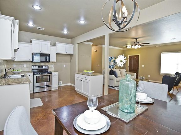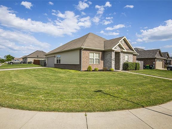 Welcome to the only actively listed home in Cave Springs under 200k! You'll love this corner lot that faces to the west. You'll love the open plan with easy to clean stained concrete flooring, granite counters/island, and convenient layout with laundry room. In the master you'll love the connected covered patio, dual vanity, and huge closet. It even goes RD if you're looking to put zero down! Currently zoned in the Bentonville High School zone. This is an agent owned home.
