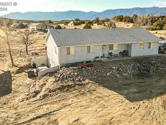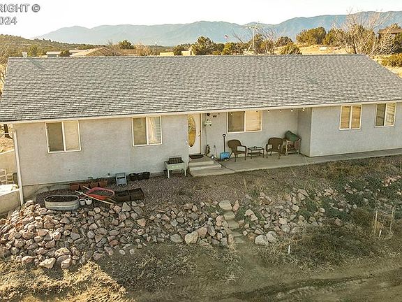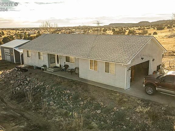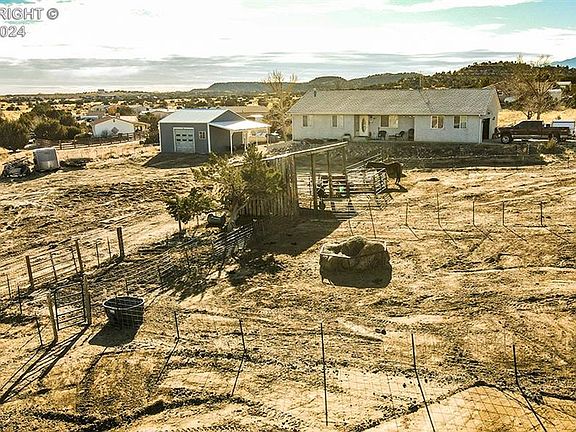 Just outside and above Florence awaits this great home with much to offer. Situated on over an acre of ground, this rancher with full basement is versatile and customizable. 3 bedrooms and 2 full bathrooms on main level with 2 potential bedrooms in basement. From basement, Walk-out to hot tub and short path to 24' x 28' shop. Solar system to virtually eliminate your electric bills. Animal corrals and pens including large fenced back yard. Nice deck and covered front patio to take in the massive views of Pikes Peak and Rocky Mountain Front Range. 2 car attached garage and plenty of space for vehicles or toys. Paved roads to and fro, making for easy commute to Canon City, Colorado Springs or Pueblo.