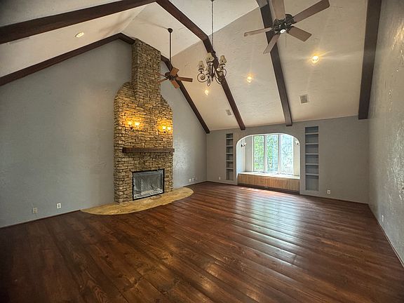 Stone fireplaceGas rangeDetached garageBay windowStainless-steel refrigeratorFlexible living spaceVaulted ceilings