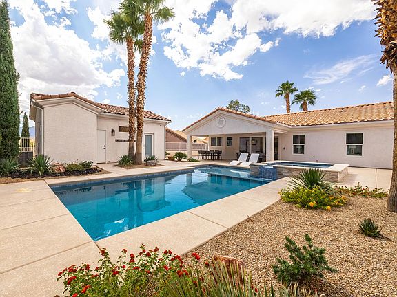 Discover the ultimate getaway in Mesquite! This beautiful home offers a resort-style backyard that feels like your own private oasis-complete with a sparkling pool, spa, outdoor dining, lounges, and plenty of sunshine. The spacious layout includes a Casita/bunkhouse and RV parking with hook-ups. Whether you're here to golf, explore, or relax, this desert retreat is the perfect place to recharge and make lasting memories.