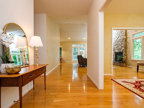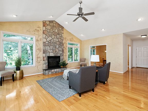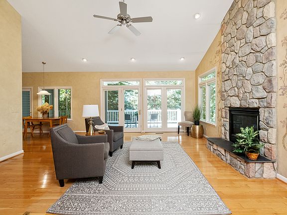 The main living level offers 3 bedrooms and 3 1/2 baths, hardwood floors, cathedral ceilings, stone gas fireplace and custom hand painted nature themed wall artwork by a local artist in living room and separate dining room. The kitchen offers plenty of cabinet space with a more informal eat-in area between the kitchen and the screened-in porch & deck. The laundry/mud-room area between the kitchen and garage offers even more pantry space with a 2nd refrigerator/freezer and deep wash sink.