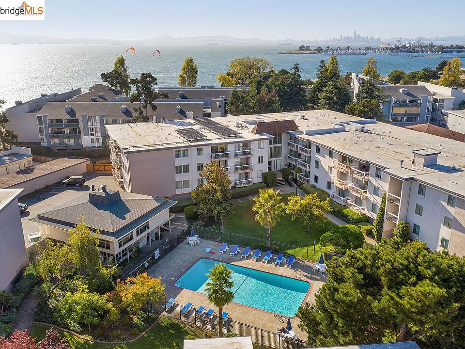 It's time for easy living beach-side on the island! Almost fully remodeled, this move in-ready 1BR/1BA condo on Alameda Island boasts a dream location offering a tranquil balcony with poolside and courtyard view. In 748 sq ft of living space, you’ve got everything you need, including incredibly thoughtful upgrades throughout. Meal prep is a snap in your sparkling kitchen with brand new stainless steel appliances w/ self-cleaning hood, flooring, and fixtures. New recessed theater lighting for cozy movie nights. New carpet in living room and bedroom (plus Hunter Douglas two-way shades for privacy and custom closet shelving). Updated bathroom features new *everything*! Permitted plumbing and electrical upgrades. RARE convenience of 3 deeded parking spaces, 1 near the elevator. Amenities include clubhouse, heated pool, sauna, and beautifully manicured grounds. Imagine jaw-dropping sunsets, bayside strolls, trails, bike paths, dog park, kiting, windsurfing, paddling, with convenient access to the best restaurants on the island, South Shore Center, breweries, farmers market, you’ve got it all! Public transportation is around the corner, ferry to SF is 2 miles away. Fido can join you. Jump into the good life! Wonderful location, neighbors and opportunity. Don't miss it! Open Sat/Sun