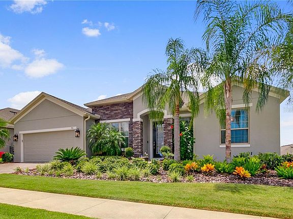 PARADISE FOUND! This nearly new spacious home is nestled in the highly desirable community of Highland Ranch, which boasts resort-style amenities, rolling hills, & breath-taking sunsets. Excellent curb appeal & professionally manicured landscape invites you through the custom glass etched front door into this open concept light filled home. The family room, breakfast room, & kitchen are a winning combination of open space with views of the screened lanai & fenced backyard. The kitchen's walk in pantry, upgraded double ovens, five-burner gas cooktop, & large central island lends to delightful entertaining. The home also features a formal dining room for those special gatherings. The master suite, in this split bedroom floor plan, has its own wing at the back of the home w/ large walk-in closet, master bath with separate shower, soaking tub, & his/her vanities. This home offers a private guest suite w/ full bath & a dedicated OFFICE w/ closets (could easily be used as 5th bedroom). Two secondary bedrooms share a well-placed jack & jill bath. Upgraded features include: carriage lighting, wireless garage keypad, rain gutters, ring doorbell, garage overhead storage & Fast Trac system, laundry sink, 8' doors throughout, Sherwin Williams premium interior and exterior paint, tray ceilings, ceiling fans, designer lighting, window treatments, extended paver patio, additional outdoor outlets, & patio TV. A short walk away is the resort-style pool, pirate-themed splash pad, firepit, volleyball court, basketball court, small & large dog parks, tot playground, open flex field, & walking trails. Next to West Orange Trail/Southlake Trail, Clermont & Winter Garden shopping & restaurants, as well as commuter's dream close to Minneola or Clermont exit off Florida Turnpike. Less than 30 mins to downtown Orlando & Disney Parks;and easy access to Orlando International Airport. Schedule your appointment TODAY, before it's gone!