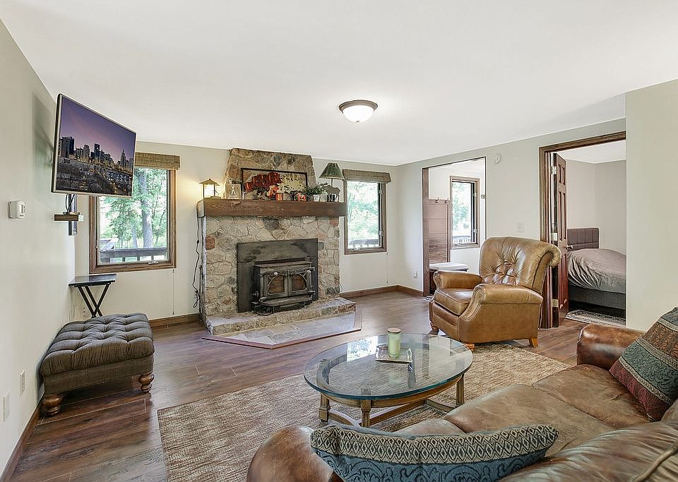 Recently renovated rustic retreat. This home is truly one of kind and a must see! Off a regionally acclaimed Wisconsin rustic road and bordering the 2,892 acre Willow River State Park, with state park river access. At 1,560 sq. ft w/ 2 bed 2 bath, this walkout home has plenty of natural light, a wrap-around deck and 3 additional structures on a sprawling 2.4 acres. This home is for sale by owner.