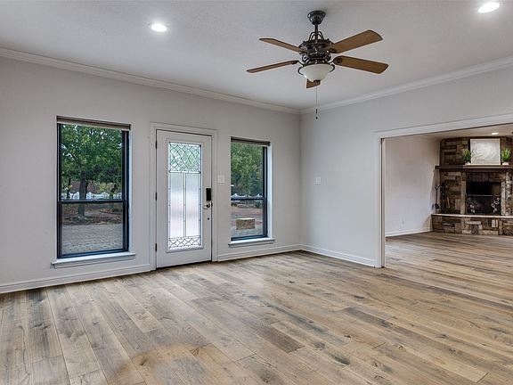 Sitting on nearly three acres, this property gives you the space, privacy, and presence of a true private estate right in Mansfield. The 4-bedroom home underwent a full down-to-the-studs, $250,000 remodel about seven years ago, updating major systems, reworking the layout, and bringing the interior up to today’s standards with quality finishes throughout. With over 3,500 sq ft, the home features generous room sizes, great natural light, updated flooring, and a welcoming main living area centered around a stone fireplace. The kitchen offers plenty of workspace and storage, and even the washer, dryer, and two refrigerators convey with the home for added convenience. Outdoors, the owners invested more than $200,000 in custom paver work, creating multiple patios, walkways, and entertaining spaces that seamlessly connect the house to the land. The acreage is level, usable, and filled with mature trees, giving the property a calm, park-like feel with endless possibilities for expansion—pool, workshop, guest house, or more. Solar panels help reduce utility costs, and while the home feels secluded and tucked away, it remains just minutes from Mansfield schools, shopping, and conveniences. It’s the kind of setting that rarely hits the market: close to everything, yet quietly set apart from it all.