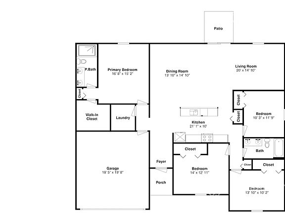 Home Features and Amenities: Air Conditioning, Fenced Yard, Garage, Kitchen Island, Long Lease Terms, Open Floorplan, Patio, Pet Friendly, Primary Bedroom on Main, Recessed Lighting, Single Story House, Smart Home, Stainless Steel Appliances, Tile, Walk in Closet, W/D Hookups, and professionally managed by Invitation Homes.