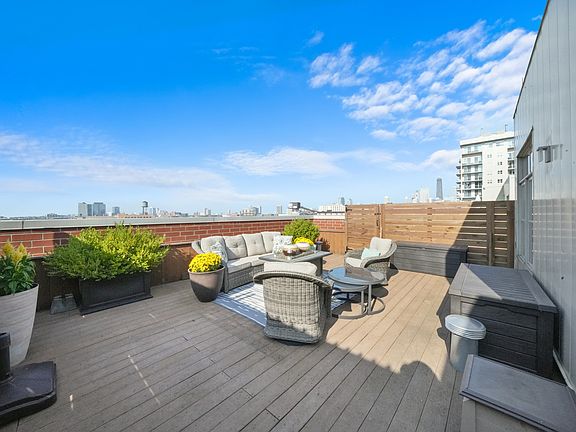 Stunning PENTHOUSE on the 6th floor of an elevator building, featuring 2 outdoor spaces, including a PRIVATE ROOFTOP DECK! This 3 Bed + den, 2.1-bath condo offers an open floor plan that seamlessly connects the kitchen, dining, living areas, and patio, making it ideal for both family living and entertaining. Host a large gathering or BBQ on the private roof deck with city views. The two spacious en-suite bedrooms add to the comfort. Includes one heated premium garage parking space and additional storage cage. Located just one block from the Chicago Blue Line, with only two stops to downtown and a 10-minute walk to the West Loop. Conveniently close to CVS, Big Shoulders Cafe, Orange Theory Fitness, D'Agostino's Pizza, The Dawson, Piccolo Songo, and the Milwaukee Ave Bike Corridor into the city. Just 1/2 mile from 90/94 and moments from West Town, River North, Fulton Market, and the West Loop. Enjoy the best of both worlds-low traffic and a phenomenal location! Take a 3D Tour, CLICK on the 3D BUTTON & Walk Around.