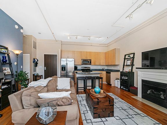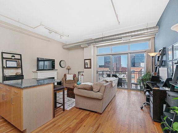 Fantastic condo in the perfect West Loop location. The spacious living room is open to the kitchen and features a gas fireplace and hardwood floors. The kitchen features granite, 42" maple cabinets, stainless appliances, and an island large enough for seating. The bedroom is FULLY ENCLOSED and had great organized closets. There is an extra storage space as well. The 12ft ceilings, balcony with great views and the 6ft soaker tub make this a great home for relaxing. The building has on site management, an exercise room, and a business center. A first level garage parking space to be sold with the unit for $25K.