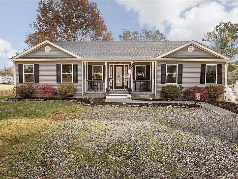 Gorgeous ranch style home with no HOA! There is truly something for everyone in your family to love here. Spacious open floor plan featuring 1,800+ Sqft, split bedroom design w/3 BDRMS, 2 full BTHS, a She Shed & greenhouse. Beautiful hardwood flooring throughout the main open areas. The kitchen showcases a textured tile backsplash, black SS appliances, cherry cabinets, center island & breakfast bar. Primary ensuite offers a walk-in closet, double vanity, new tile walk-in shower & has 36' wide handicap accessible doors. All 3 BDRMS have new LVP flooring & all bathrooms have new tile flooring. Washer & Dryer convey! The finished 2-car attached garage has a 30ft door & a 10ft door. Enjoy sipping your morning coffee on the covered front porch or BBQ's while entertaining your family & friends on the concrete patio. The finished 16x12 "She Shed" w/a lean-to has its own heat & air & would make the perfect office to work from home in. Side fenced in yard perfect for kids & pets! There is also a 8x12 sunroom/greenhouse w/heat & air & a separate 12x12 metal shed. Great location just minutes from the town of Mineral & Louisa, Lake Anna & less than 15 minutes to interstate 64.