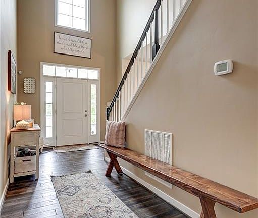 Be the very first to see this clean as a whistle Transitional 2-story in the highly desired Collington Community. Upon entry you will feel the love and warmth in this home. The sellers have just added just north of $20K in high end, textured hardwood floors to the first floor and a bathroom remodel to the powder room. The 1st level offers a vaulted foyer and an open concept layout that is super handy for friends and family gatherings as well as everyday living. The chefs dream kitchen is generously sized and offers a large island with seating for 3 for that lunch on the run. The 2nd level offers 4 bedrooms including a large Owners Suite w/separate sitting area and a large private 5 fixture bath. This home is tucked away on a cul-de-sac lot backing to woods which offers minimal traffic and privacy in the level fenced back yard. The exterior also features stacked stone accents on the front, direct entry garage and a large rear pressure treated deck. Call today for a private showing.