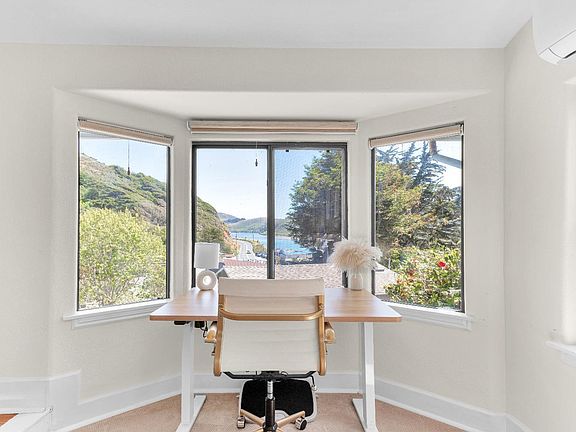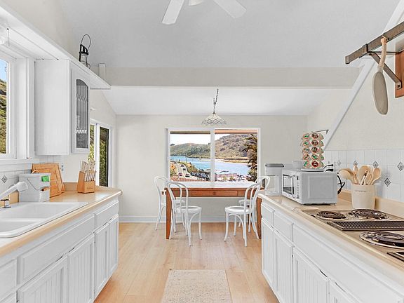 VIEWS! Perched above the dramatic meeting point of the Russian River and the Pacific Ocean, this refined retreat captures the essence of Coastal Sonoma County. Constructed nearly a century ago and thoughtfully improved over the years, the residence blends classic charm with understated luxury, an ideal sanctuary for those seeking beauty, serenity + connection to nature. Picture windows frame sweeping views of the water. Soft ocean breezes infuse the home with calm. Features two generous bedrooms and two well-appointed baths, one with a beautiful clawfoot tub. The kitchen, outfitted with character-rich vintage appliances that have stood the test of time, adds a touch of nostalgic elegance. Wood stove. Modern comforts, such as newly installed mini-splits. 1-car garage. From the light-filled living spaces to the inviting deck where sunsets fill the sky, thoughtful details welcome relaxation + connection. Perfectly positioned just steps to town + minutes to Goat Rock Beach, the home offers effortless access to coastal adventures, riverfront strolls + the warmth of nearby cafes. Whether envisioning a serene full-time residence, a sophisticated weekend escape, or a successful turn-key vacation rental, this property embodies the rare and timeless allure of California coastal living.