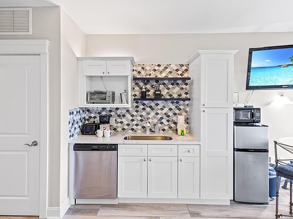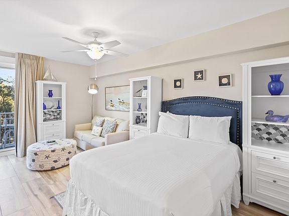 Guests & owners alike will adore this charming renovated studio with a balcony offering a modern ambiance and over $10k invested in new furnishings. Featuring new porcelain plank tile flooring throughout! The new kitchenette boasts sleek white cabinets and countertops, an added pantry, and a stylish fish-scale tile backsplash in shades of blue, gray, and white, complemented by floating shelves. For added convenience, the kitchenette includes a midsize refrigerator, microwave, dishwasher, and a new sink. The elegant fish-scale tile design continues into the bathroom, enhancing the shower backsplash, while a new white vanity and shelving provide a clean, contemporary touch. . Additionally, there's a brand-new water heater, making this condo move-in ready and perfect for a relaxing getaway. The Grand Sandestin welcomes you with gracious architecture and luxurious amenities including a fitness center, Ballyhoo Bar, swimming pool, seasonal on-site check-in, and concierge services. Enjoy the location adjacent to the Village of Baytowne Wharf, a pedestrian market place that hosts a variety of dining and shopping venues as well as fun for the whole family!