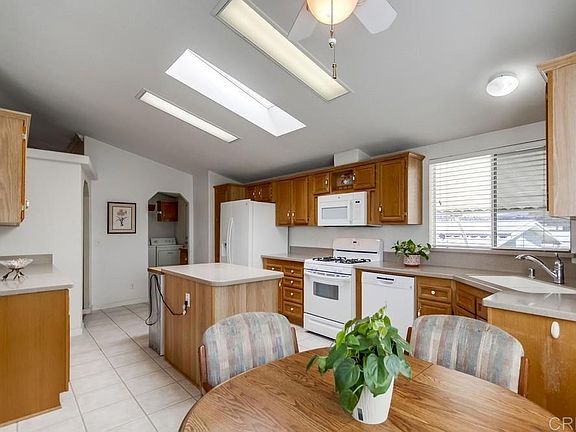 Welcome to Lake Jennings Park Estates, one of East County’s most desirable 55+ gated communities offering scenic views, resort-style amenities, and true pride of ownership throughout. This beautifully maintained 3-bedroom, 2-bath home (with one bedroom currently used as an office) features 1,586 sq. ft. of spacious single-level living on a 3,829 sq. ft. lot. Built in 1997 and on a 433A permanent foundation, this home qualifies for traditional financing, a rare find in this sought-after neighborhood! Step inside to a bright and airy floor plan with vaulted ceilings, skylights, and natural light flowing throughout. The modern kitchen features white appliances, a cozy breakfast nook, abundant cabinetry, and sleek countertops. The large primary suite offers mirrored closet doors, a walk-in closet, ceiling fan, and an attached bath with dual sinks, a jetted soaking tub, and a separate shower. Enjoy peaceful views from the front porch, a private patio and yard perfect for relaxing or entertaining, and a low-maintenance landscape that complements the home’s curb appeal. Additional highlights include a newer roof, newer HVAC, laundry room, vaulted ceilings, a shed, and a spacious driveway. The low HOA fee of just $218/month includes access to a sparkling pool, jacuzzi, well-kept grounds, multiple parks, dog park, and a clubhouse with a grand fireplace, full kitchen, library, craft room, game room, and billiards. Residents love the quiet, park-like setting surrounded by trees, green meadows, and close proximity to Lake Jennings for fishing, hiking, and outdoor recreation. Conveniently located near shopping, dining, entertainment, and freeway access, this home combines comfort, convenience, and community in one perfect package. Experience the best of Lakeside 55+ living. Schedule your private showing today!