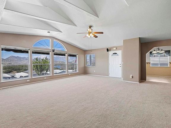 WELCOME HOME!!! This wonderful 3 bedroom, 2 bathrooms home features plenty of windows to soak in natural light & enjoy the mountain & lake views! Located in the highly desired community of Lake Jennings Estates, a 55+ gated community with plenty of amazing features to keep you busy all year round including a clubhouse, shuffleboard, community pool & jacuzzi, exercise room, library, parks, and more! The high, vaulted ceilings, flowing floorplan, and light paint add to the charm of this great home. The large primary bedroom features a bonus room perfect for a reading area, office, exercise space, etc. The in suite features dual sinks and a walk-in shower. Enjoy your morning coffees or afternoon teas from your back patio with beautiful mountain & lake views! Other features include a laundry room, 2-car carport, shed with electricity, porch and so much more! Enjoy this rare community where you OWN YOUR LAND, no space rent here. The low HOA is only $240.48 a month and includes basic Cox cable and trash. Don't miss out on this great opportunity!